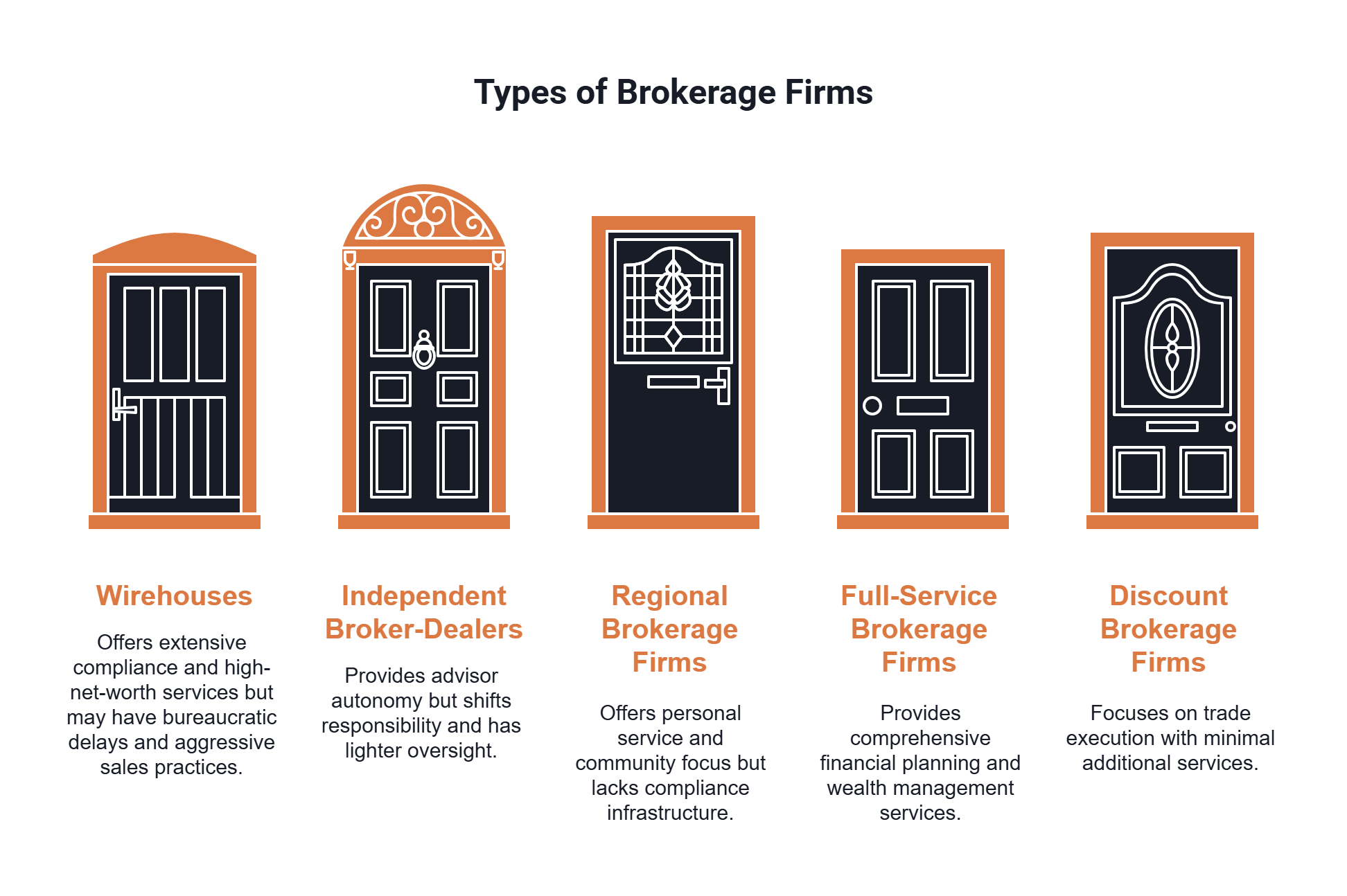 Not all brokerage firms operate the same way. The size, culture, and structure of a firm influences how they handle client disputes and what kind of risks investors face. Below is a breakdown of the primary categories of brokerage firms, along with comprehensive lists of examples.