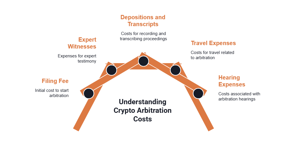 A fully contested crypto arbitration—complete with expert witnesses, depositions, and a final evidentiary hearing—can exceed $50,000 in hard costs, not including attorney’s fees. Most cases take 12 to 18 months to resolve, meaning costs accumulate over time as the case moves through various phases.